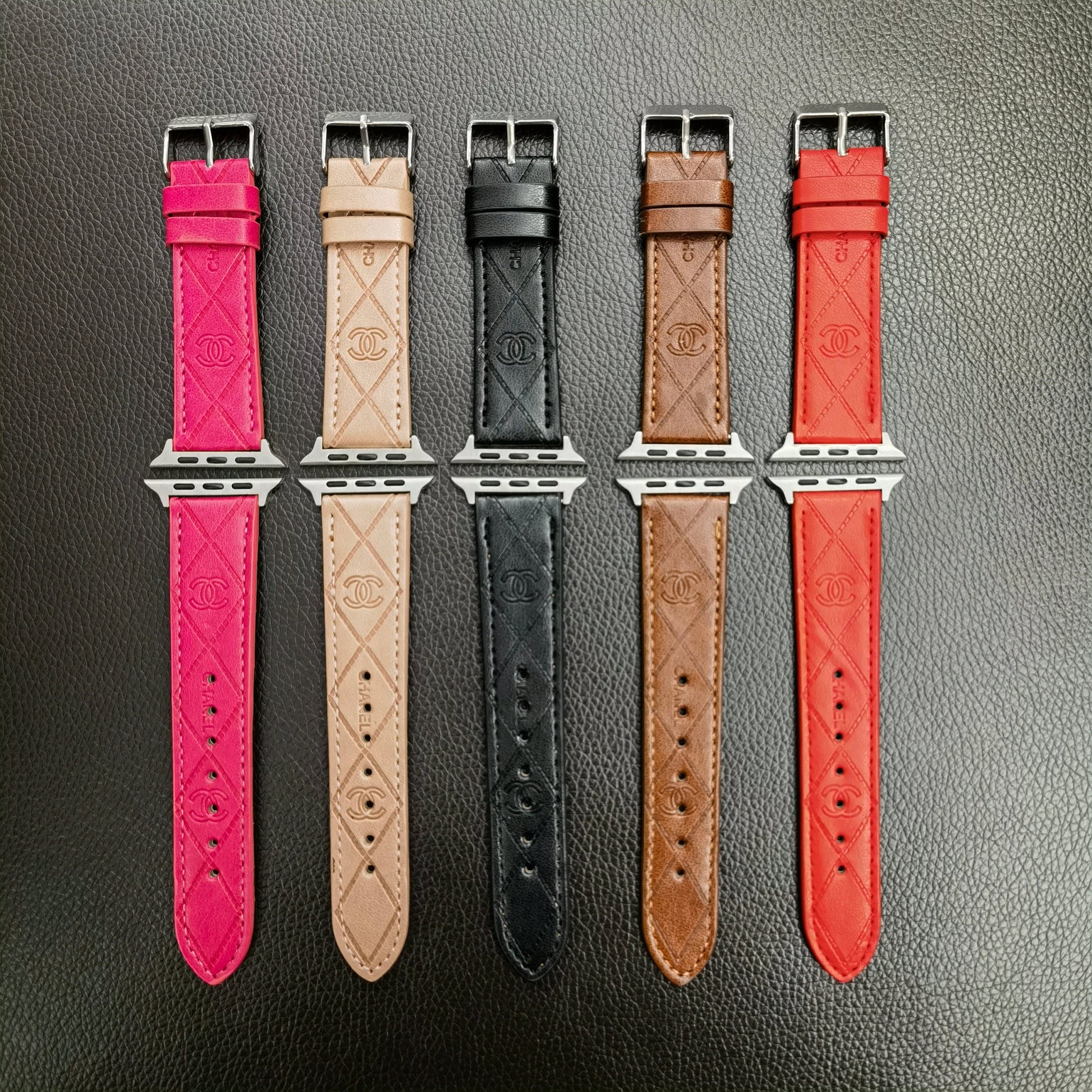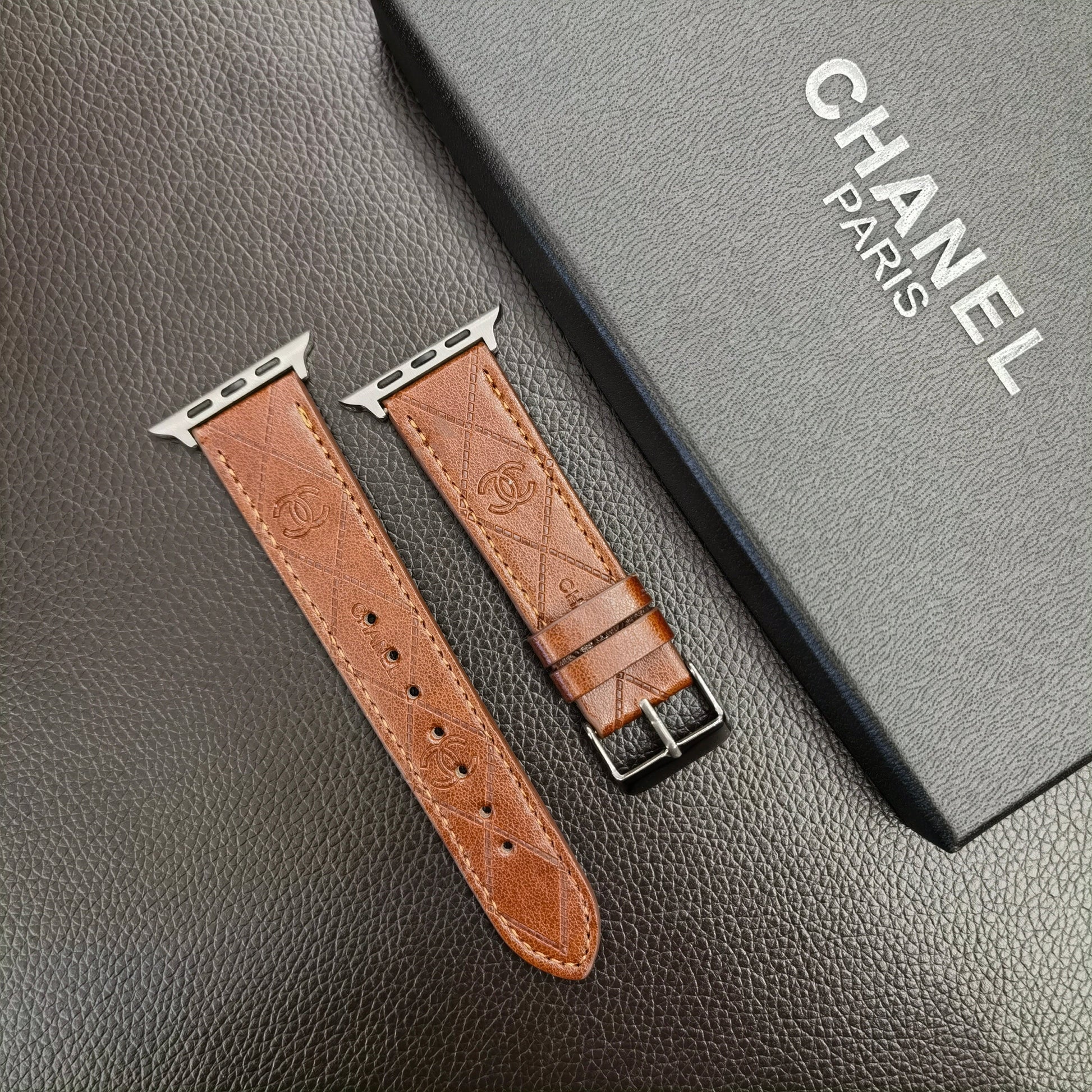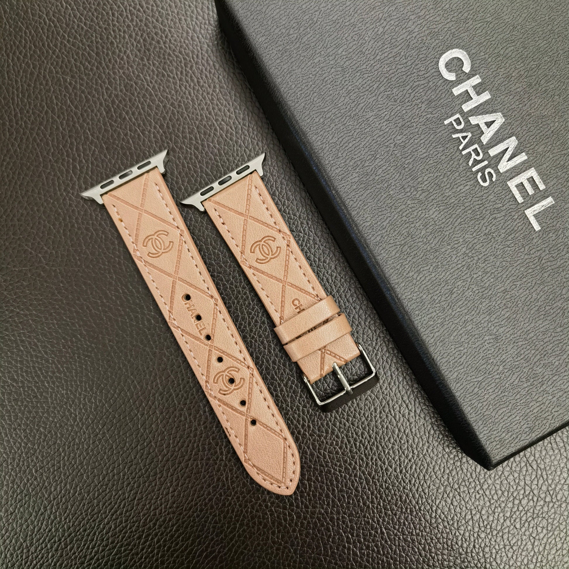 - Elevate your Apple Watch with the epitome of sophistication – the Luxury CC Apple Watch Band Strap. Crafted with meticulous attention to detail, this exquisite accessory seamlessly merges iconic CC elegance with cutting-edge technology. Made from premium materials, the band boasts unparalleled durability and comfort, ensuring a luxurious wearing experience.
